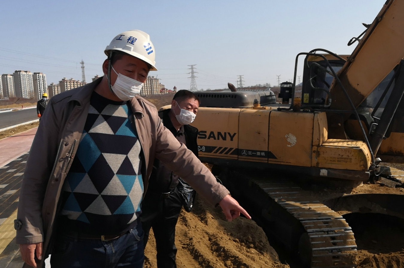 2月2日下午,威海胸科醫(yī)院擴建給排水工程高效完工后,他又帶領(lǐng)工程團隊馬上轉(zhuǎn)換“陣地”,奔赴東部新城泊于水庫至所前泊水庫應(yīng)急調(diào)水工地現(xiàn)場。他針對疫情落實現(xiàn)場及設(shè)備消毒,組織協(xié)調(diào)各方施工人員,合理安排工程施工。在保證施工安全的前提下,嚴格落實施工人員體溫檢測制度,詳細登記個人情況,反復(fù)叮囑所有施工人員佩戴口罩、手套,禁止閑雜人員進入現(xiàn)場,把疫情防控施工人員的生命安全和身體健康放在第一位。
